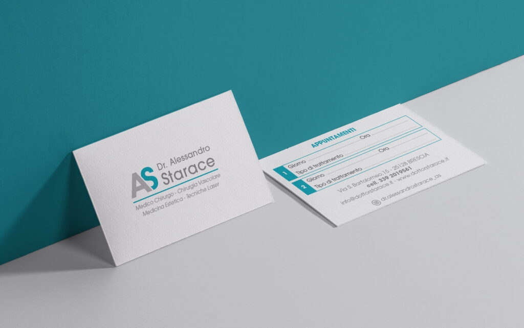 Laureato in Medicina e Chirurgia c/o l’Università di Milano, abilitato all’esercizio della Professione di Medico Chirurgo, ed iscritto all’Ordine dei Medici della provincia di Brescia, il Dott. Alessandro Starace si è rivolto a noi per la realizzazione di tutta la sua immagine coordinata partendo dallo studio del logo, al visual della sede di Brescia, fino al sito web.